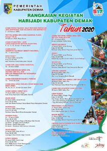 Demak, 09/03/2020 Dalam memperingati Hari Jadi Demak Ke-517, Pemkab Demak menyelenggarakan serangkaian kegiatan Hari Jadi Kabupaten Demak. Ada 27 kegiatan yang akan memeriahkan Hari Jadi Demak tahun ini Diantaranya yakni : Lomba Petani Teladan, Balai Penyuluh Pertanian (BPP) Berprestasi, Dan Kelompok Tani Berprestasi Festival Lomba Seni Siswa Nasional (FLS2N) Kategori SD/MI Lomba POSKESTREN/UKPP (Upaya Kesehatan …