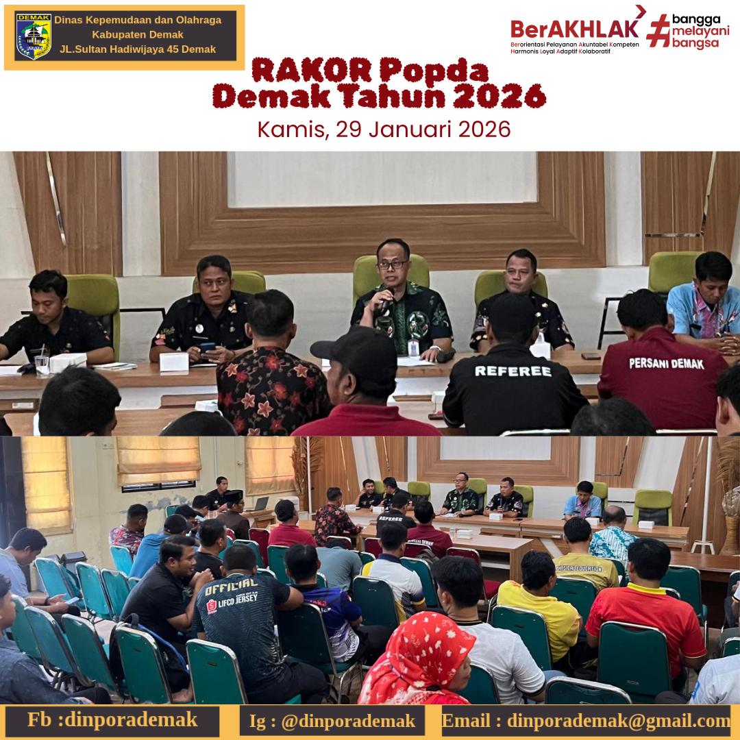 Demak— Dinas Kepemudaan dan Olahraga Kabupaten Demak melaksanakan Rapat Koordinasi Pelaksanaan Persiapan POPDA Tahun 2026 yang dilaksanakan di Aula Dinpora Demak. Kamis(29/1/2026).