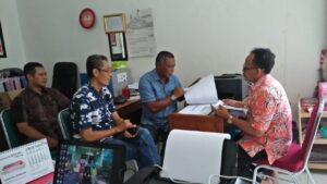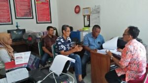 Kepala Bidang Kemitraan dan Informasi DINPORA Demak (Drs. Sujarwo, M.Pd) melakukan Diskusi dan Koordinasi dengan Konsultan membahas tindak lanjut Pelaksanaan Penyusunan DED Gelanggang Olahraga di Mangunjiwan, Demak.